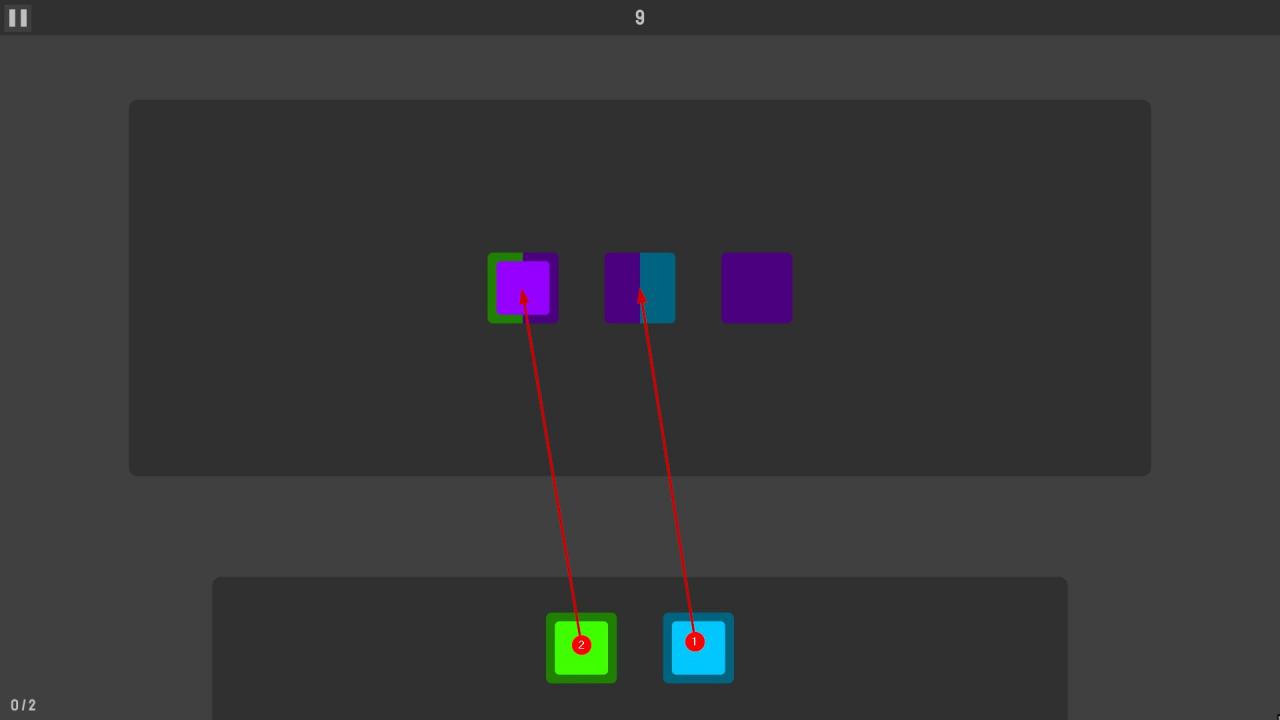 Note that some of these separators disappear after a tile matches their color (depending on the direction from which the tile comes), while for others the color matching will need to be maintained until the end of the level. - Tiles will swap whenever one of the inner colors matches one of the outer frame colors.