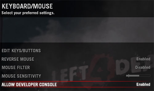 Alternatively, you can enable the console under your launch options. To enable developer console through your launch options, right click Left 4 Dead 2 under your games library. Choose properties from the drop down list. Then select general and launch options. Pasting “-console” inside your launch options with enable your developer console.