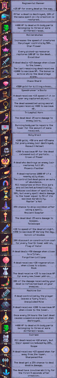 I will show the characteristics of all the artifacts that I have at the moment